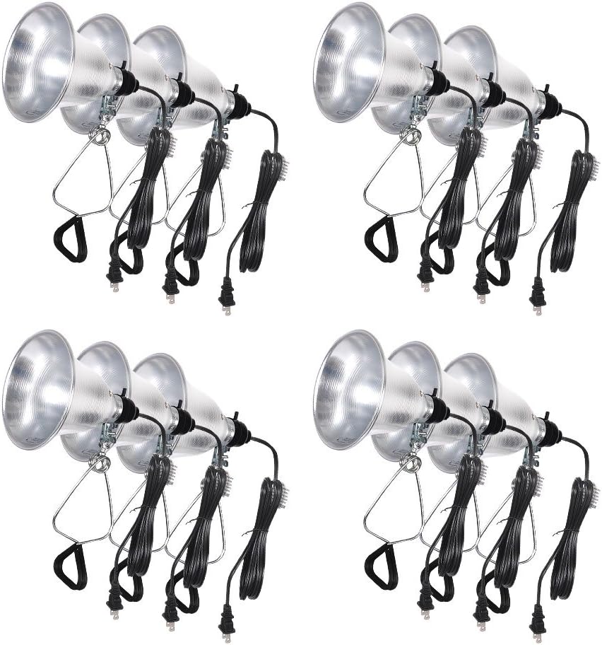 Simple Deluxe Clamp lights are superior quality products, designed using the very latest technological advancements. The clamp lights have a wide variety of uses and is suitable for many environments. Our clamp light works great for studio, garages, workshops, photo studio, aquarium, art studios and more. Feature and advantage: Our clamp light accepts up to 60-watt type A bulb (E26). Great for indoor plants with led grow light bulbs. Versatile multi-use utility lamps with polished and vented aluminum reflectors. CALIFORNIA WARNING: The power cord on this product contains chemicals, including lead known to the State of California to cause cancer. Wash hands after use. Specification: Quantity: 12 Pack; Volt: 120V ;Max Watt: 60W ;Reflector Diameter: 5.5 inch; Cord length: 6 feet.